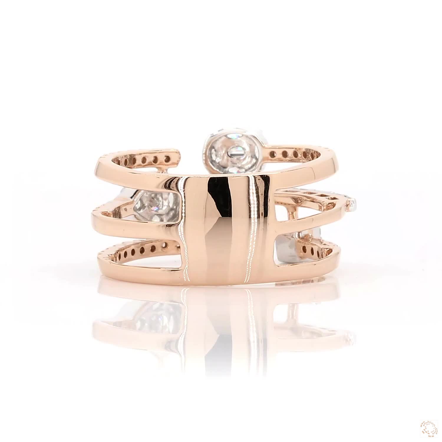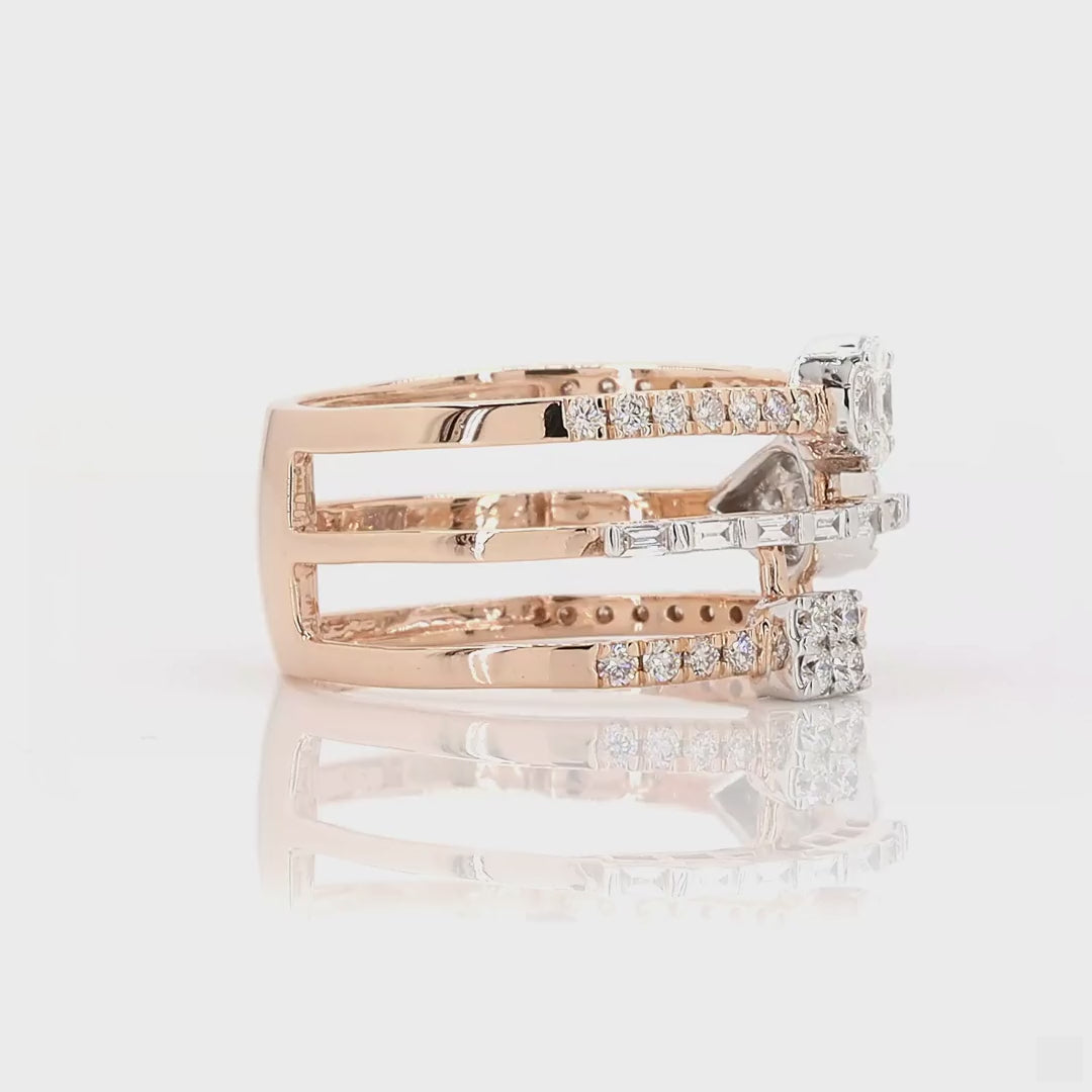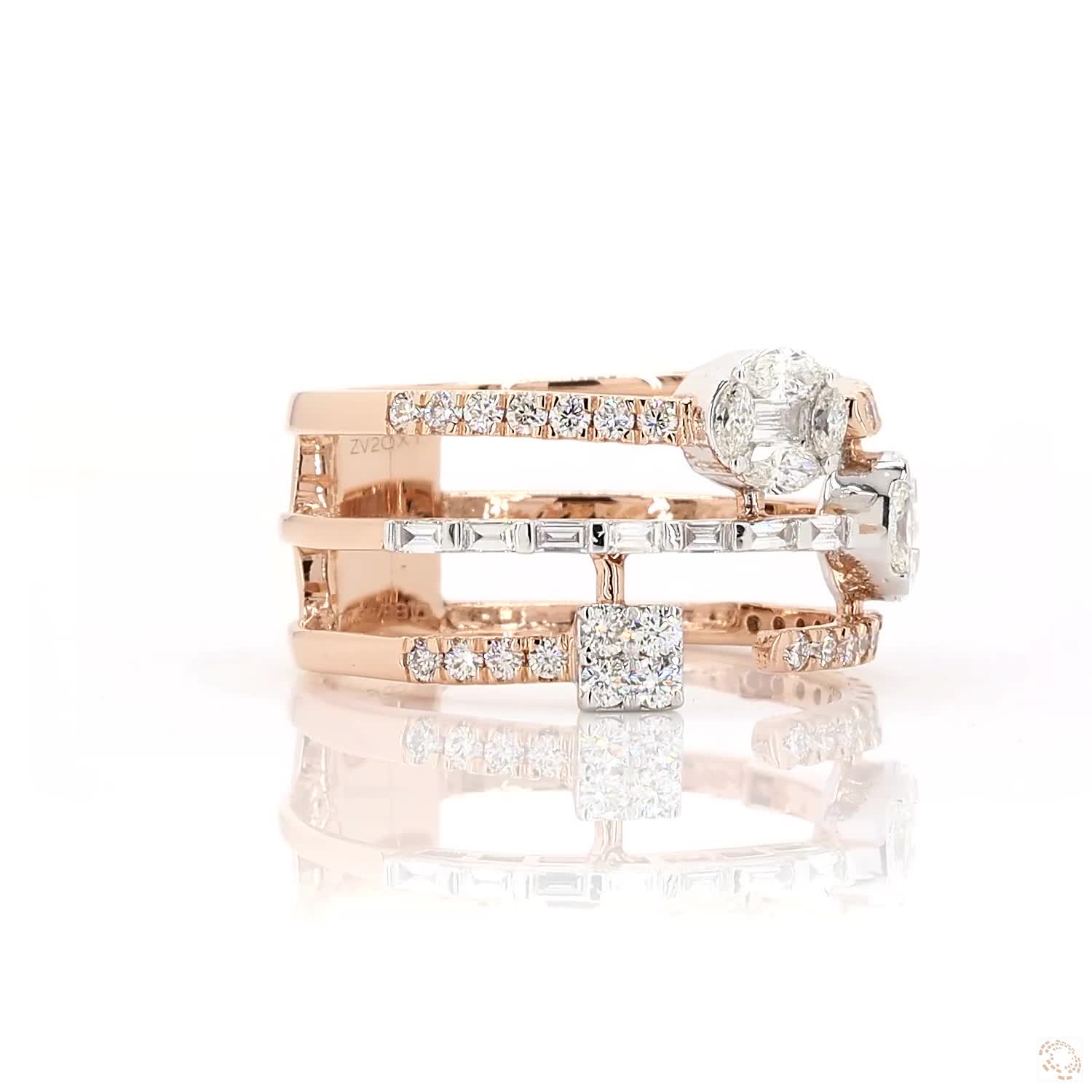 Experience the epitome of luxury with the Diamond Fusion Band Ring, showcasing a harmonious blend of four exquisite diamond shapes: round, baguette, marquise and pear-cut diamonds, accompanied by princess-cut accents. This masterpiece boasts intricate craftsmanship and exceptional fire.